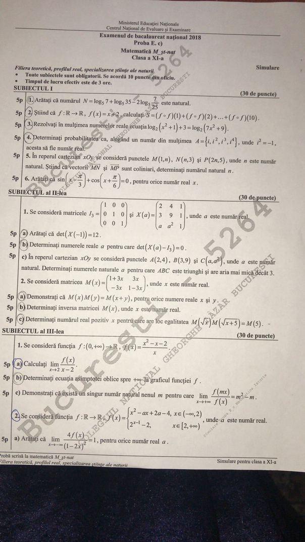 Modele subiecte bac 2018 publicate de ministerul educatiei.